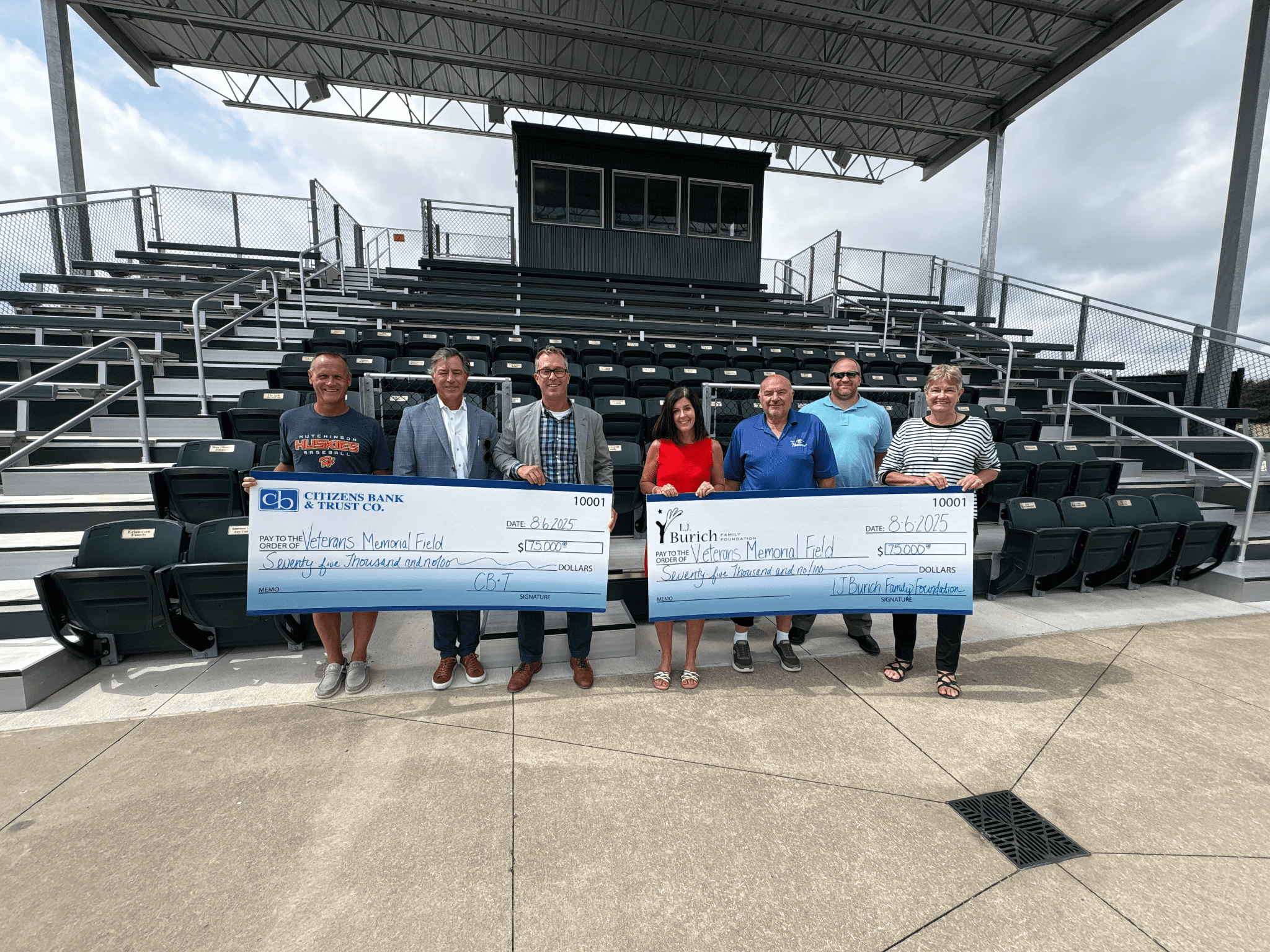 Citizens Bank & Trust Co. and the I.J. Burich Family Foundation each donated $75,000 toward the new grandstand at Veterans Memorial Field.…